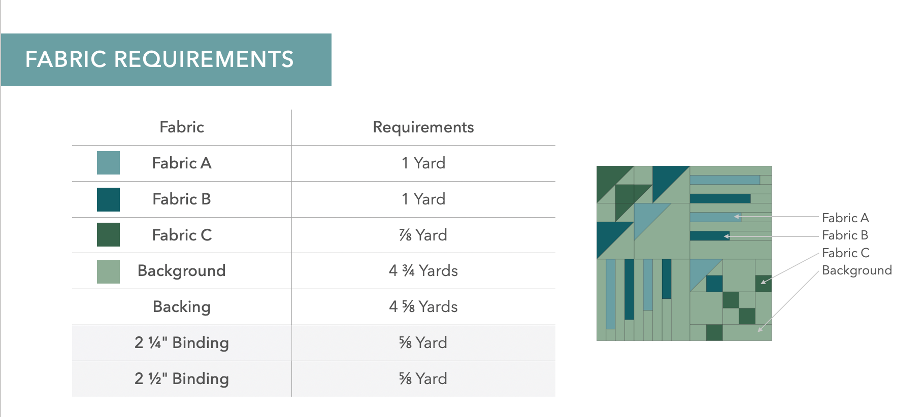 Pattern provides opportunity to use scraps, pre-cuts, or other non-yardage fabric options.