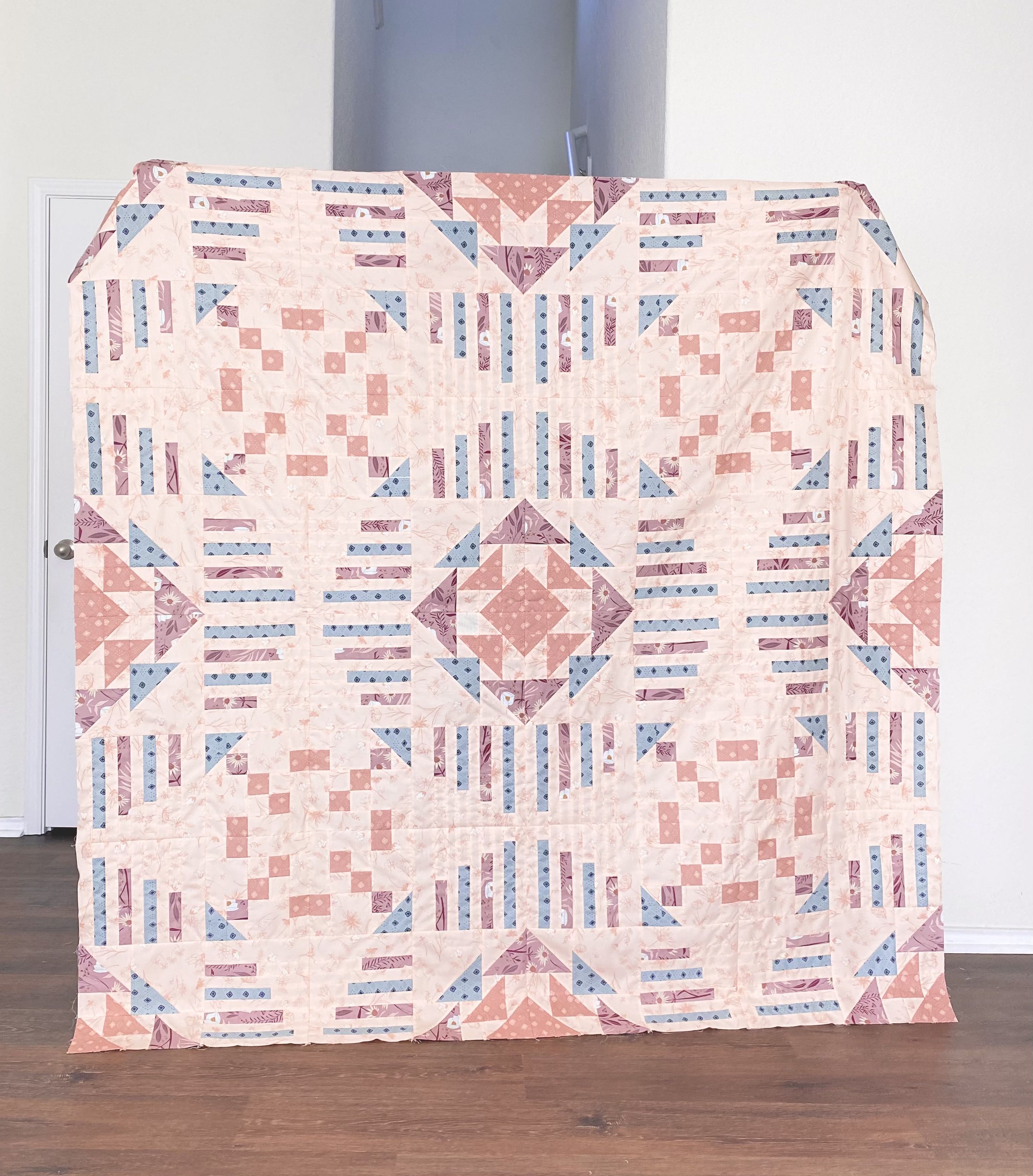 Mystic Path is a quilt pattern designed and written by Olivia of The Quilty VA. This pattern comes in one large size of 75” x 75”. Mystic Path was designed around the idea of one block that is arranged in a way to make an intricate design.